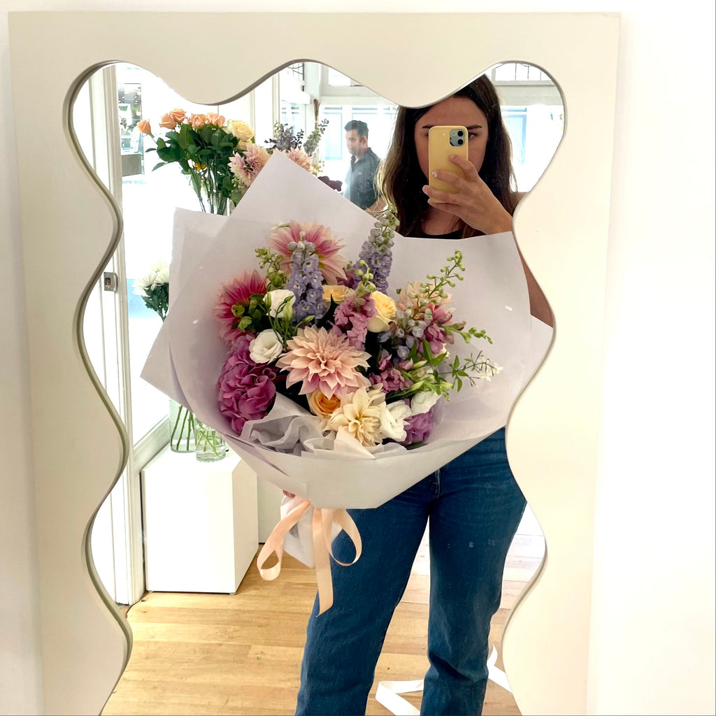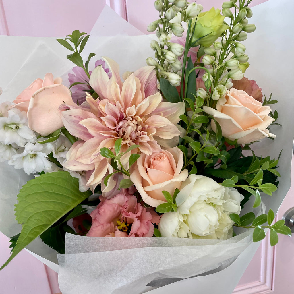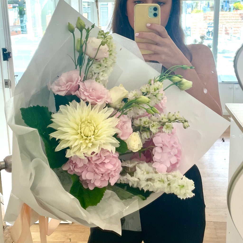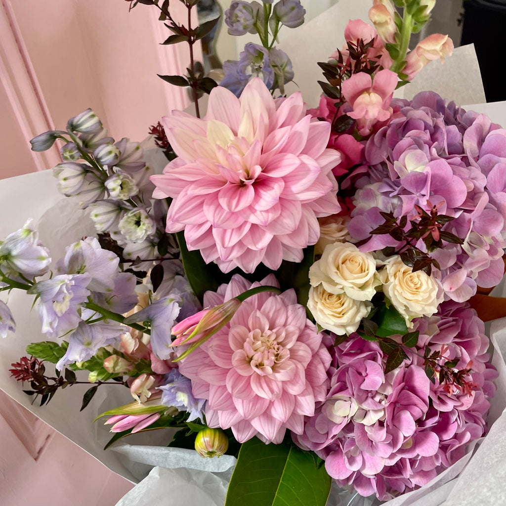This is Cellar Daisy’s most romantic bunch. Perfect for your sweet loved ones or the pink obsessed person in your life. Typically, we lean towards soft pink, lilac, white, with a touch of green. Feel free to add a note if you have any specific colour requests. Please note that our flowers are dependent on seasonal availability flower varieties will vary from month to month. The photo are for colour reference.