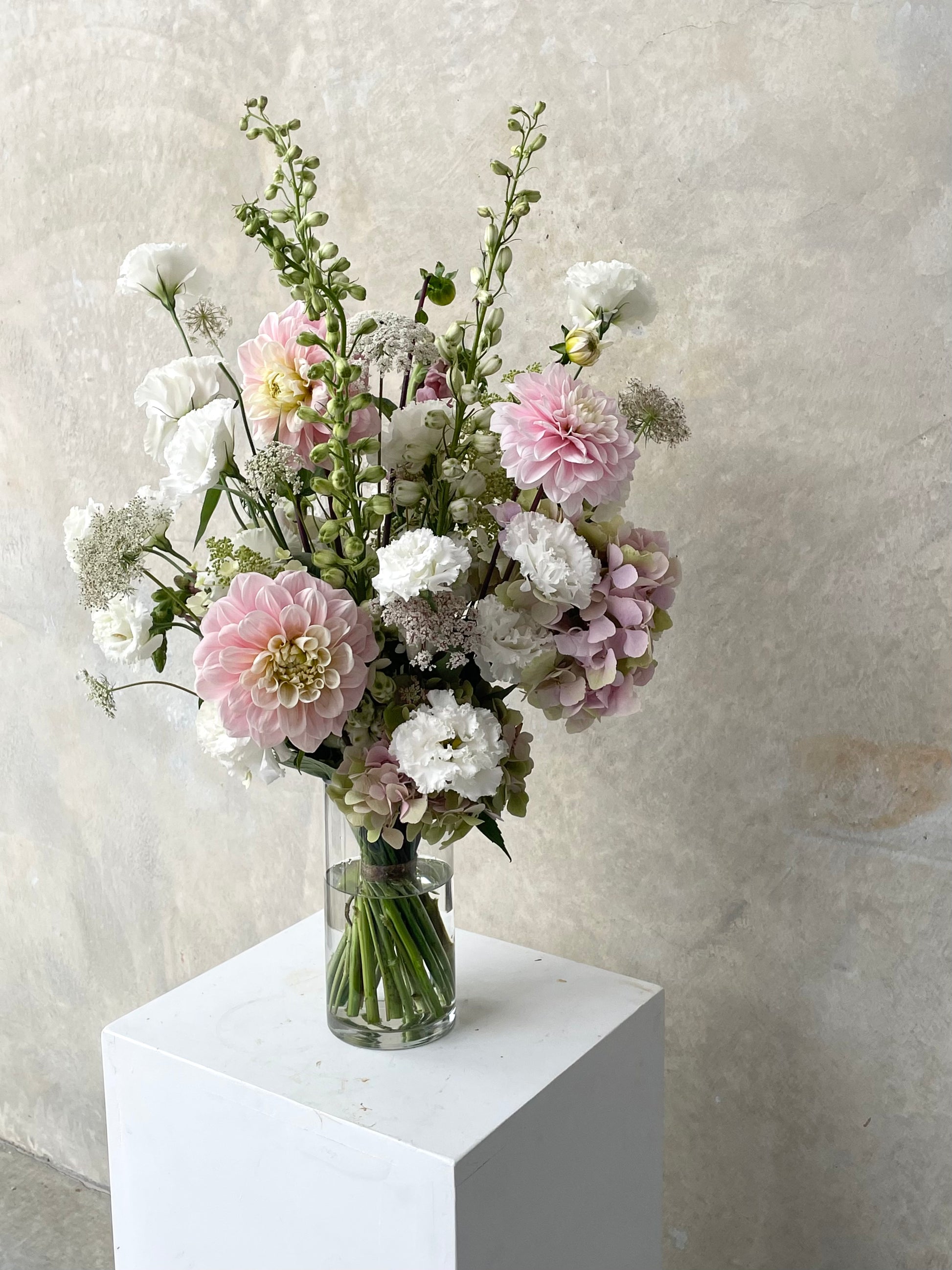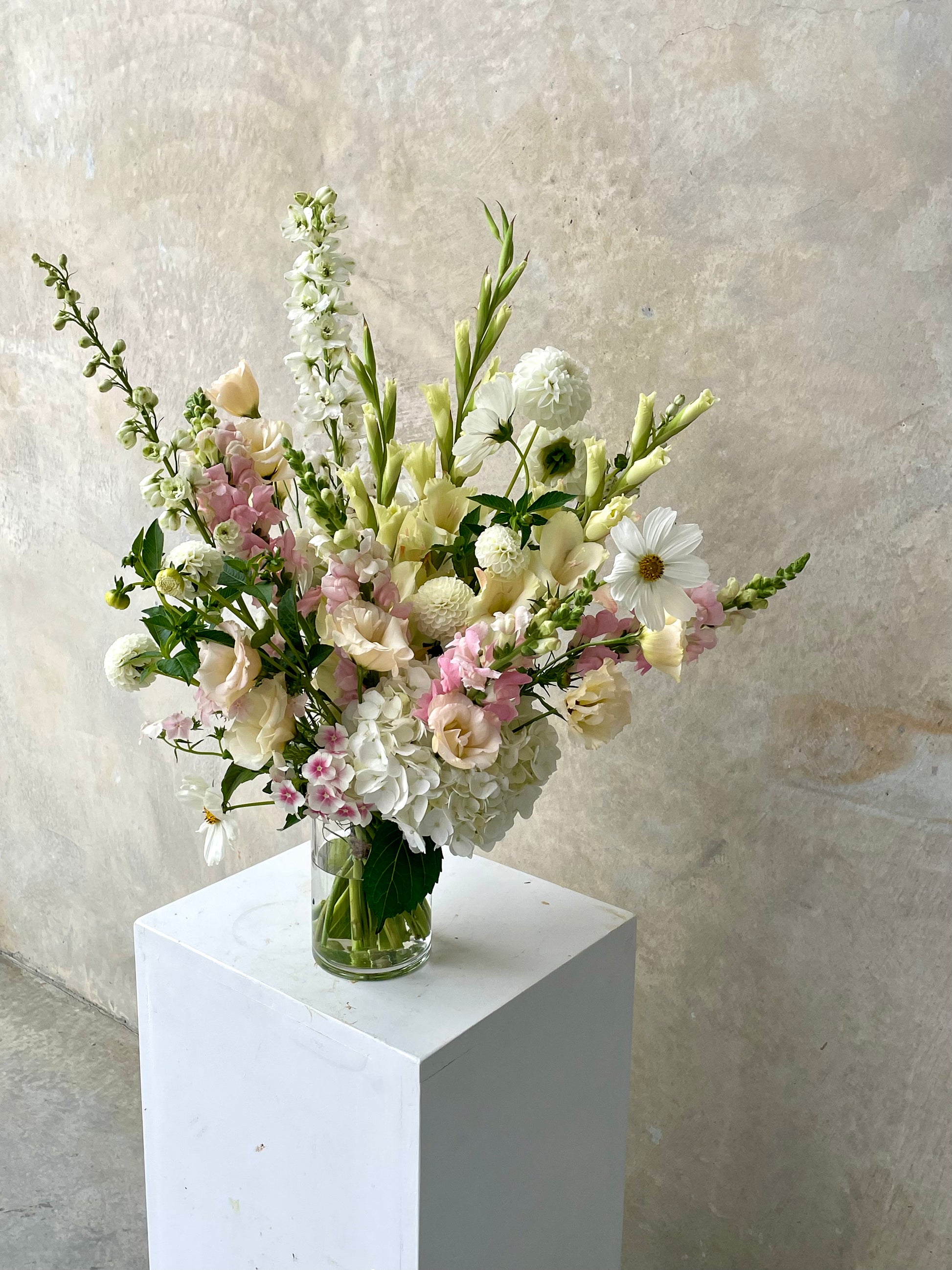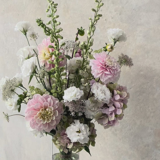 The Softie Bouquet is our pastel sweetheart - soft pinks, lilacs, and whites arranged in that effortless organic-modern style we’re known for. We choose the freshest seasonal blooms (the good stuff only) to keep things looking dreamy, refined, and a little bit extra. Because we design with what’s in season, every Softie has its own personality - always unique, always beautiful, and always staying true to those soft, airy tones that make her… well, a Softie.